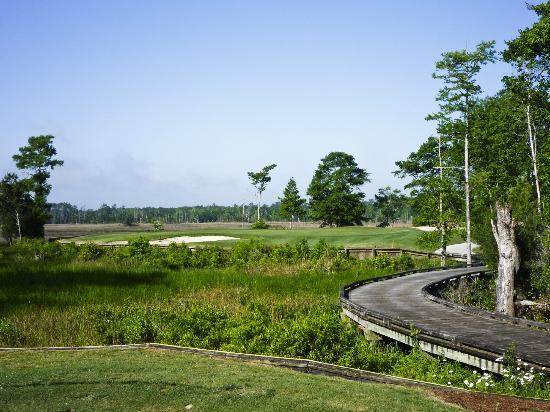 Carolina National Golf Club is a 27-hole golf course that features gracious fairways with few trees that come into play. There is ample room from tee to green, though it offers some challenges. A variety of tee box placements may greatly vary the characteristic of the holes. Dogleg fairways, both right and left, may be added with tee variations. The greens are average-sized and slightly undulating.