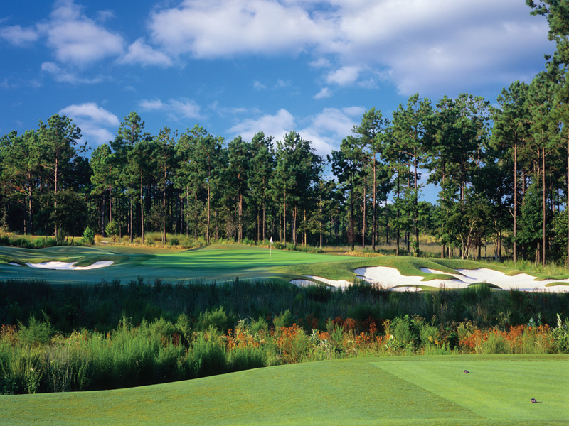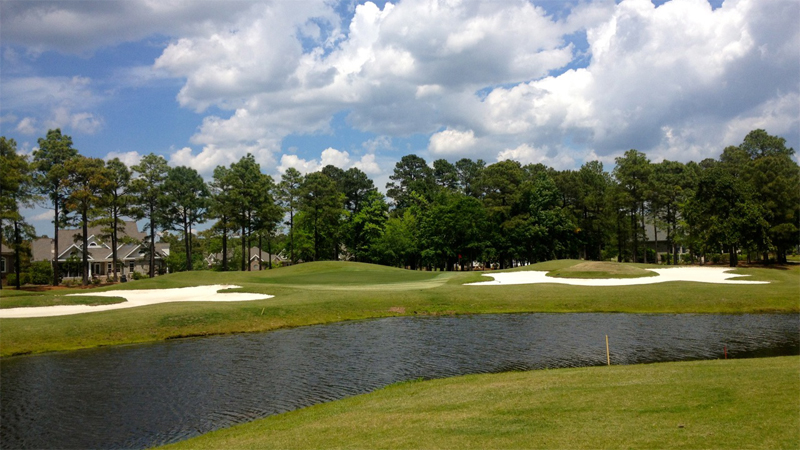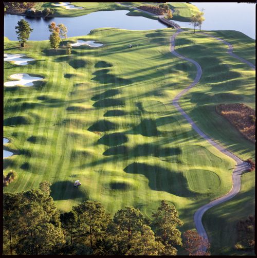 This facility has three regulation eighteen hole golf courses. The Panther’s Run golf course plays alongside a nature preserve that frequently comes into play. The fairways are undulating, and the water hazards are not only challenging, but very scenic due to the brooks, lakes and waterfalls. Wildlife that is typically seen on the golf course include deer, barn owl, and many types of waterfowl. A demanding and picturesque hole on the Panther’s Run golf course is #18, a 425-yard, par 4, which requires two well-struck shots to carry a lake that bisects the fairway.