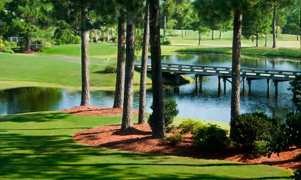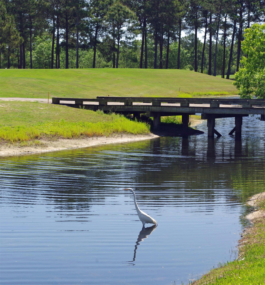 Sandpiper Bay Golf Club is a 27-hole championship facility, with three nines (Sand, Piper and Bay) playable in three eighteen hole combinations. The rolling contoured fairways and the naturally sculptured bunkers add to the beauty of this scenic golf course situated alongside the Little River. More than forty acres of lakes meander through the golf course, and wildlife is abundant. Pine trees line the fairways, and the greens are medium in size and speed.