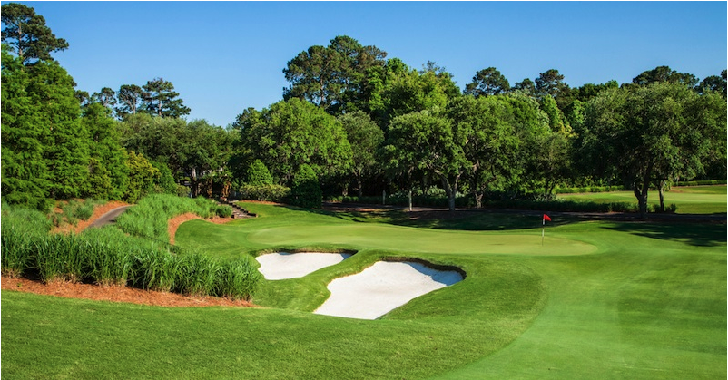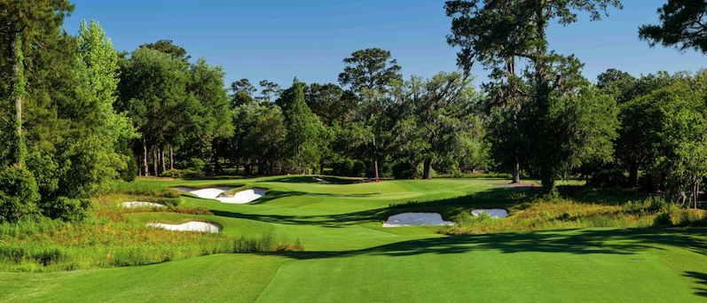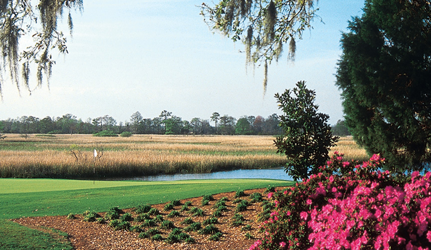 This Pawleys Island, SC golf course is located on the site of a former rice plantation bordering the Waccamaw River, and was later turned into an exclusive fishing and hunting preserve. The name Caledonia comes from the Plantation’s original founder, Dr. Robert Nesbit, a Scottish immigrant, who acquired the property with his marriage to Elizabeth Pawley, after whose family Pawleys Island is named. Caledonia Golf Course is extremely scenic and home to an abundance of wildlife. The fairways are wide open, and the greens are large and undulating. Water hazards come into play on at least three different occasions. Each tee is marked by replicas of the native waterfowl that inhabit the plantation’s rice fields. The most outstanding feature of the golf course is its clubhouse, an actual replica of a colonial plantation house from the 1700’s. “GOLF Magazine” selected this golf course 85th in the category of the “Top 100 golf courses You Can Play in the U.S.” for 1996. “GOLFWEEK” named it 81st among “America’s 100 Best Modern golf courses” for 1997, 42nd in 1998 and 49th in 1999.