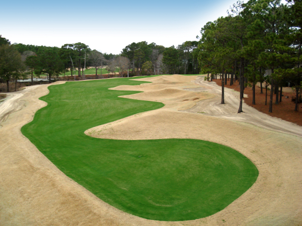 The Founders Club opened for play in 2008 and attracts golfers because of its unique appeal: sand instead of long, unforgiving rough. The course was designed by Thomas Walker, former lead designer for Gary Player Design, on what used to be the Sea Gull Golf Club, a Gene Hamm design that dates back to 1966. Like much of the surrounding area, the original course was relatively flat. Walker changed the look and feel of the course by moving over a quarter million cubic yards of dirt. The $7 million renovation project included a new Lowcountry-style clubhouse, overlooking the 18th green.