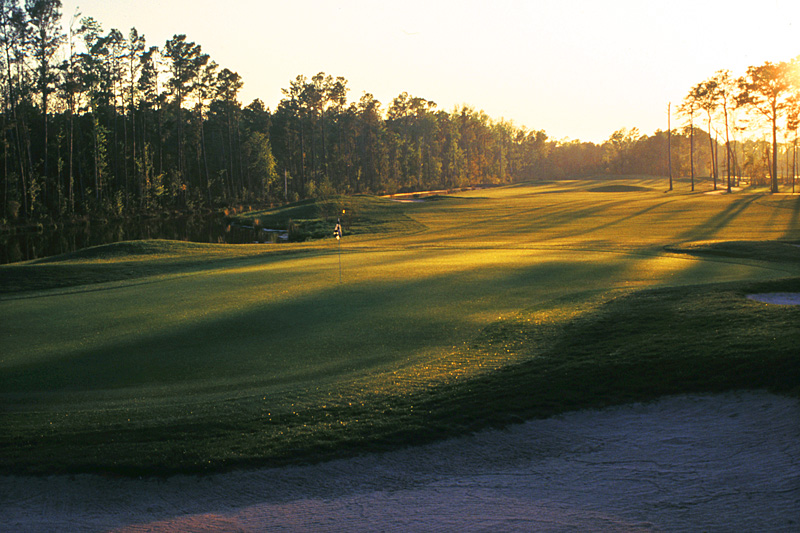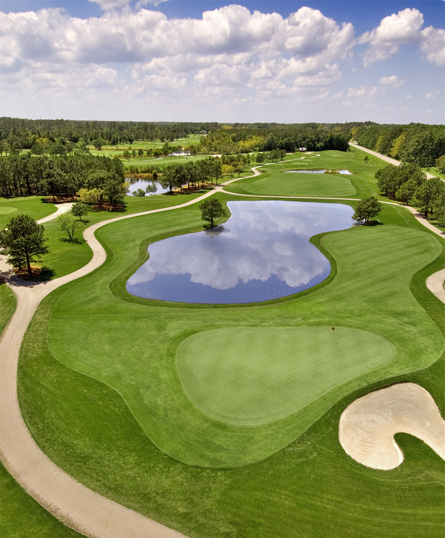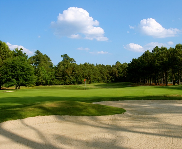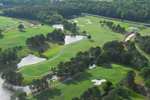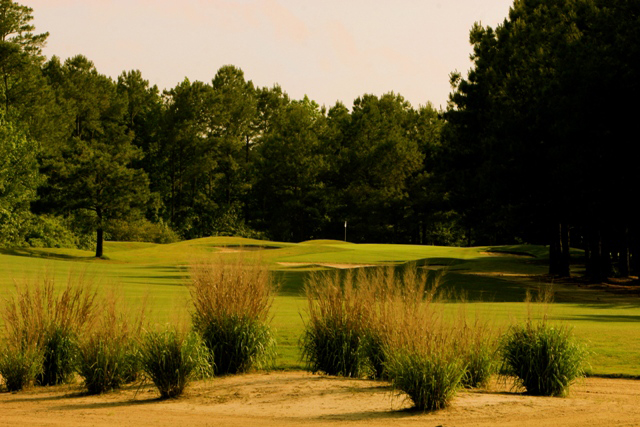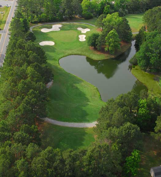 Meadowlands Golf Club is a championship, 18-hole golf course designed by architect Willard Byrd and sister golf course to Farmstead Golf Links. The golf course plays through wetlands and tall grasses, typical for this part of North Carolina. Several holes are lined with mature hardwoods and the fairways are gently rolling. The fast greens are average in size, with little undulation. Water comes into play on several holes in the form of several freshwater lakes located throughout the golf course. Meadowlands plays from 5,041 to 7,054-yards and there are five sets of tees to challenge all skill levels. The signature 6th hole is a 432 yard par 4. From an elevated tee you must avoid a pond down the left side,the approach shot is over a hidden water hazard to a raised green.